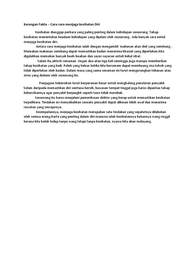 Tulis karangan tentang caracara menjaga kesihatan diri. Cara yang lebih mudah ialah seseorang itu perlu menjaga … Pembentukan masyarakat penyayang sangat penting dalam negara pelbagai kaum …